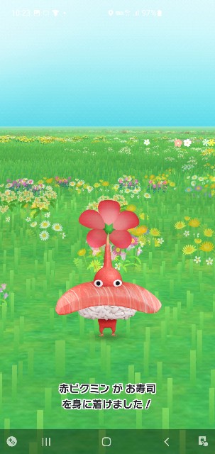 お寿司の着ぐるみを拾ってきたピクミンです。
